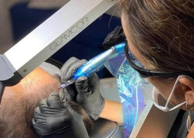 While most patients experience mild discomfort during the procedure – especially in its earlier stages – the discomfort typically becomes more tolerable as the session progresses. Some areas of the scalp have more, denser nerve endings than others, but the majority of patients focus on the benefits of the treatment rather than any discomfort they may experience.