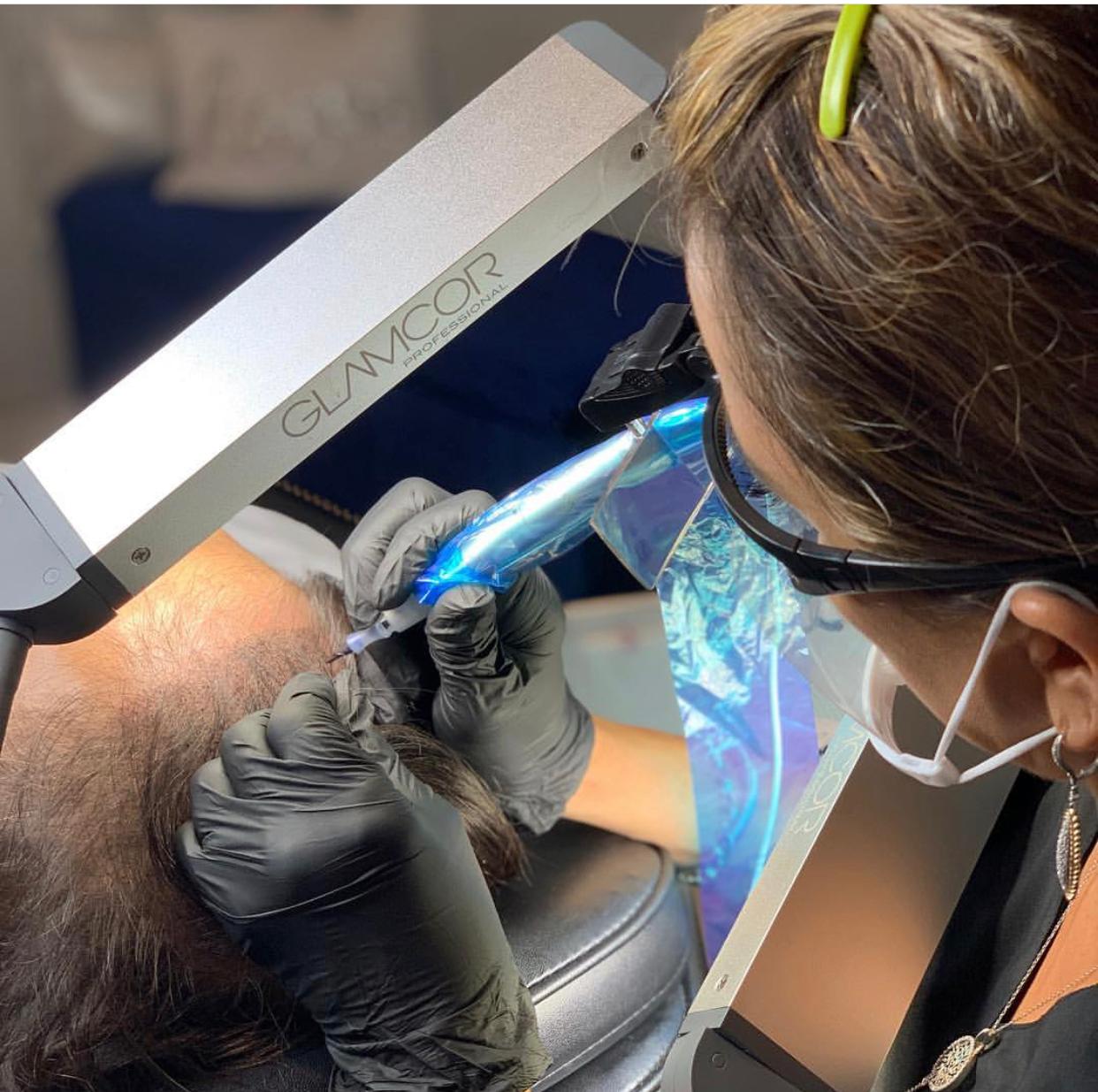 Scalp micropigmentation is a process that uses microneedles to “tattoo” pigment into the scalp. It creates the appearance of tiny hair follicles to restore the look of a fuller head of hair. The procedure replicates your natural hair follicles while strengthening and adding density to thinning areas.